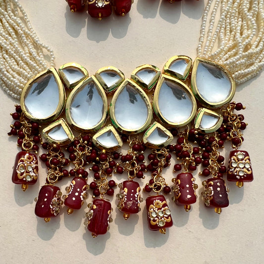 Maroon Gold Tone Kundan Choker Set
