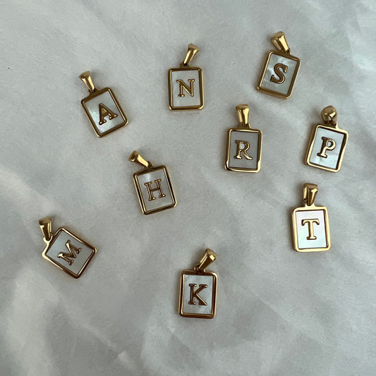 18K Gold Plated Mother of Pearl Initial Unisex Neckchain