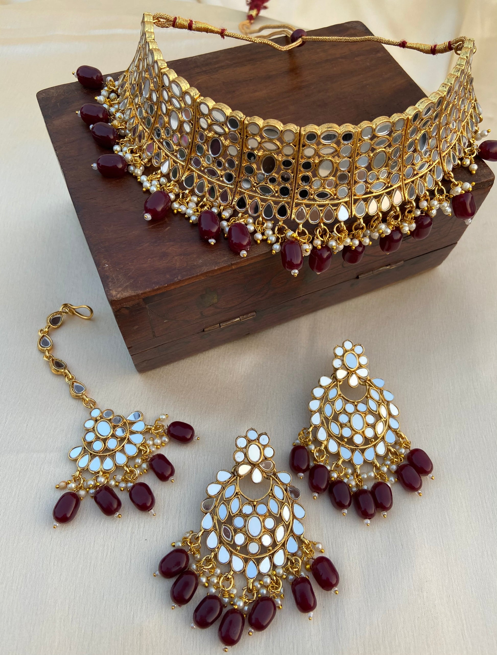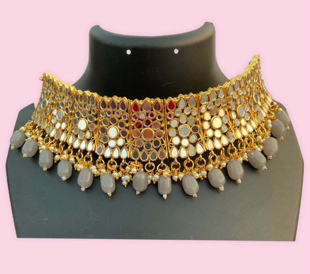 Stunning mirror choker necklace for all your festive looks. Pair this with your saree or suits to take your styling to an impeccable level.